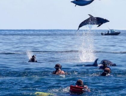 Započnite svoje putovanje u ovoj trosatnoj turi ronjenja i delfina na atolu ostrva Mnemba Zanzibar na severoistočnoj obali ostrva. Morski rezervat, poznat po svom ribljem životu kao što su lava, murena, raža i kornjače koje plivaju u plićaku. Uživajte u najboljem ronjenju, plivajte sa razigranim delfinima, opustite se na plitkom peščanom sprudu i jedite mešavinu tropskog voća.