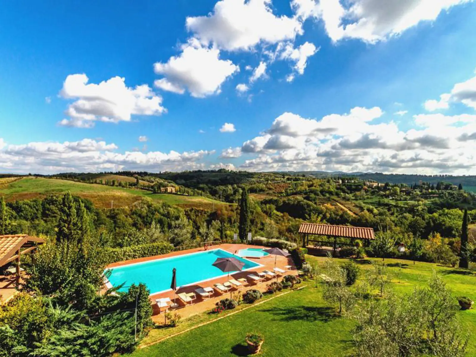 Veliko poljoprivredno imanje, okruženo drvećem i vinogradima. 5 kuća u rezidenciji. 12 stanova u rezidenciji. 4 km od centra mesta San Gimignano, 14 km od centra mesta Colle di Val d’Elsa, 35 km od centra mesta Sijena, osamljeno, sunčano, uzvišeno na vrhu brda, u zelenom. Za zajedničko korišćenje: parcela 200 ha, bašta (neograđena) sa drvećem, prirodna bašta, livada, bazen ograđen (15 x 7 m, dubina 140 cm, sezonska dostupnost: 01. maj – 10. oktobar Radno vreme bazena: 08:00-19:30). Spoljni tuš, terasa, baštenska garnitura, roštilj, održavanje bazena od strane vlasnika/baštara. U kući: recepcija, sala za doručak, dnevni boravak sa TV-om. Usluga peciva i doručak mogući na zahtev (uz doplatu). Prilaz autom u dužini od 1,8 km (preko neuređenog puta). Parking u sklopu objekta. Trgovina 2.5 km, supermarket 2.5 km, restoran 2.5 km, železnička stanica „Certaldo“ 12 km, natkriveni bazen 12 km, termalno kupalište „Gambassi Terme“ 18 km. Golf teren (27 rupa) 25 km. Obližnje atrakcije: Certaldo 12 km, Volterra 29 km, Firenze 60 km, Piza 77 km. Napomena: pogodno za porodice, oprema za bebe (uključena). Lokalna prodaja poljoprivrednih proizvoda. Vlasnik živi na istom imanju. Sve kuće/stanovi su individualno dizajnirani/namješteni. Kompleks ima još 9 kuća za izdavanje.