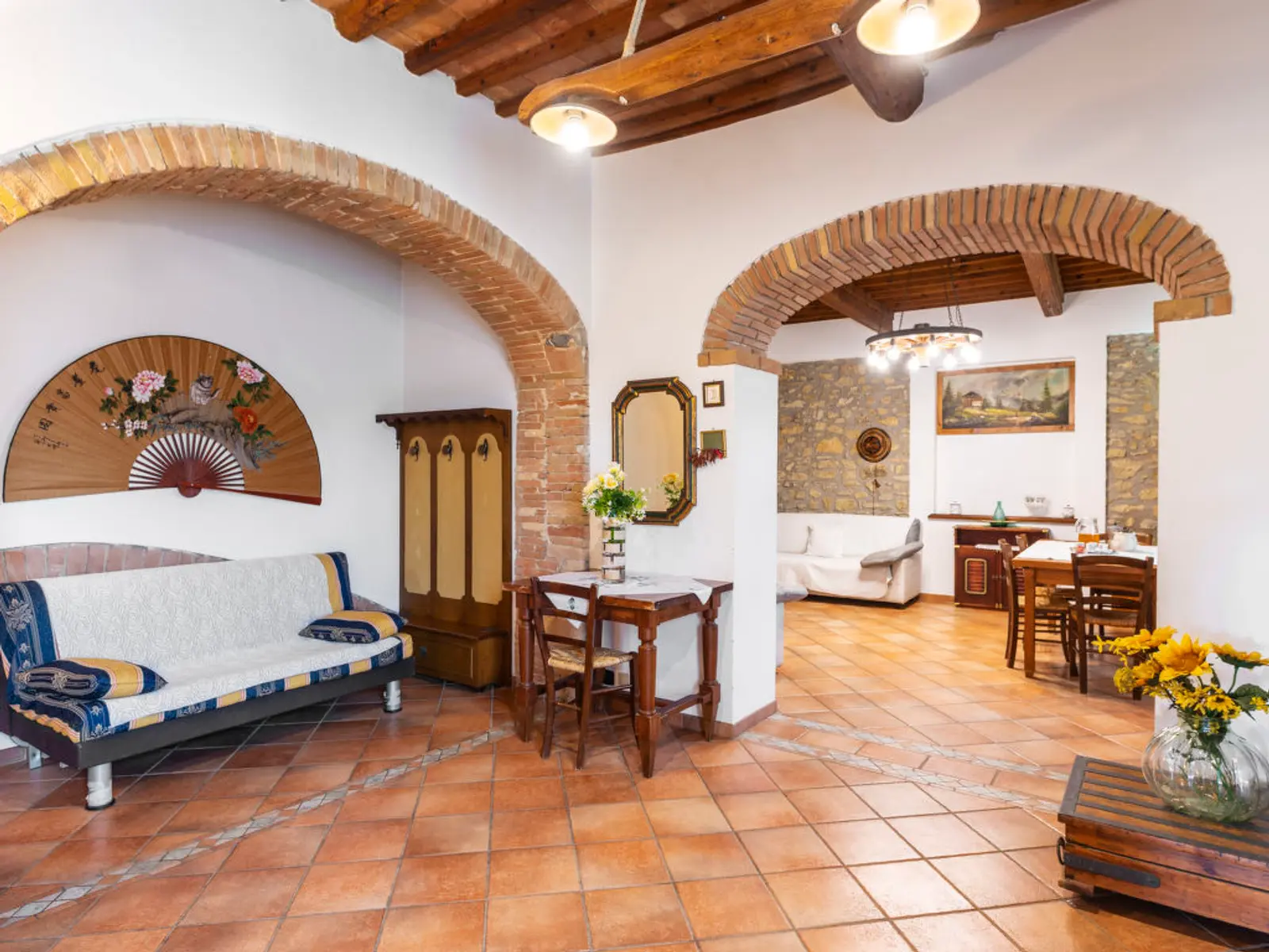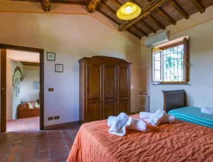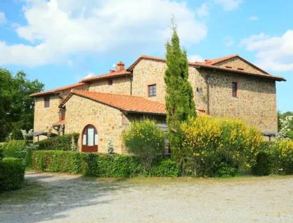 Velika, rustična seoska kuća u vinogradu, 400 m n.v., iz 18. veka, renovirana, okružena livadama i vinogradima. 3 kuće u rezidenciji. 9 stanova u rezidenciji. U okrugu Lucolena in Chianti 12 km od centra mesta Greve in Chianti, 13 m od centra mesta Figline Valdarno, izolovano, sunčano, uzvišeno, u zelenom. Za zajedničko korišćenje: imanje 40 ha, prirodna bašta, livada, bazen ograđen (8 x 4 m, sezonska dostupnost: 01.maj – 15.okt. Radno vreme bazena: 08:00-20:00). Spoljni tuš, terasa, baštenska garnitura, roštilj, održavanje bazena od strane vlasnika/baštara. U kući: recepcija, restoran, sala za doručak, WiFi, mašina za veš (za zajedničku upotrebu). Promena posteljine nedeljno. Doručak moguć na zahtev (uz doplatu). 200 m dugačak uski motorni prilaz zemljištu. Parking u sklopu objekta. Trgovina 700 m, supermarket 12 km, trgovački centar 13 km, restoran 1 km, bar, pekara 700 m, iznajmljivanje bicikala 12 km, autobuska stanica „Lucolena“ 700 m, željeznička stanica „Figline Valdarno“ 13 km, peščana plaža “ Calambrone“ 110 km, zatvoreni bazen 13 km, jezero Trasimeno 114 km. Golf teren (18 rupa) 20 km, tenis 12 km, jahanje 2 km, pešačke staze od kuće 100 m. Obližnje atrakcije: Firenze 37 km, Siena 50 km, Areco 54 km, San Gimignano 65 km. Napomena: preporučuje se auto. Recepcija je otvorena 10:00-17:00 časova. Pogodno za porodice, oprema za bebe (uključena). Pogodno za događaje. Lokalna prodaja poljoprivrednih proizvoda. Napomena: vlasnik živi na istom imanju. Sve kuće/stanovi su individualno dizajnirani/namešteni.